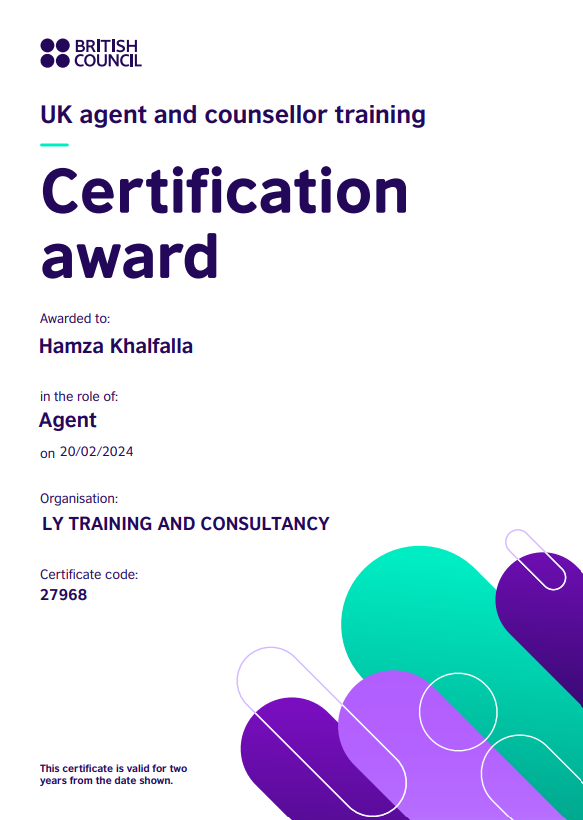 ال واي للتدريب والاستشارات، نحن شغوفون بمساعدة الطلاب على تحقيق حلمهم بالدراسة في المملكة المتحدة. من خلال الإرشاد، التدريب المتخصص، والدعم الكامل في كل مرحلة من مراحل الرحلة — من اختيار التخصص المناسب إلى تأمين التأشيرة — نجعل العملية سهلة وخالية من التوتر. يعمل فريقنا ذو الخبرة بشكل وثيق مع أفضل الجامعات البريطانية وشركاء التعليم لتقديم فرص تعليمية مصممة وفقًا لأهدافك. ، نؤمن بتمكين المستقبل من خلال التعليم والتجارب العالمية